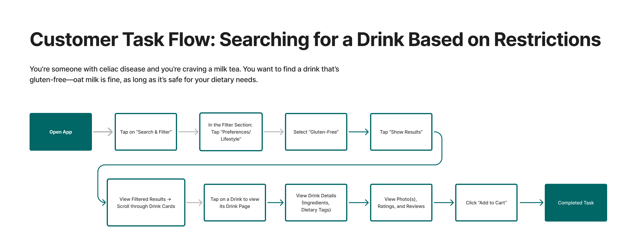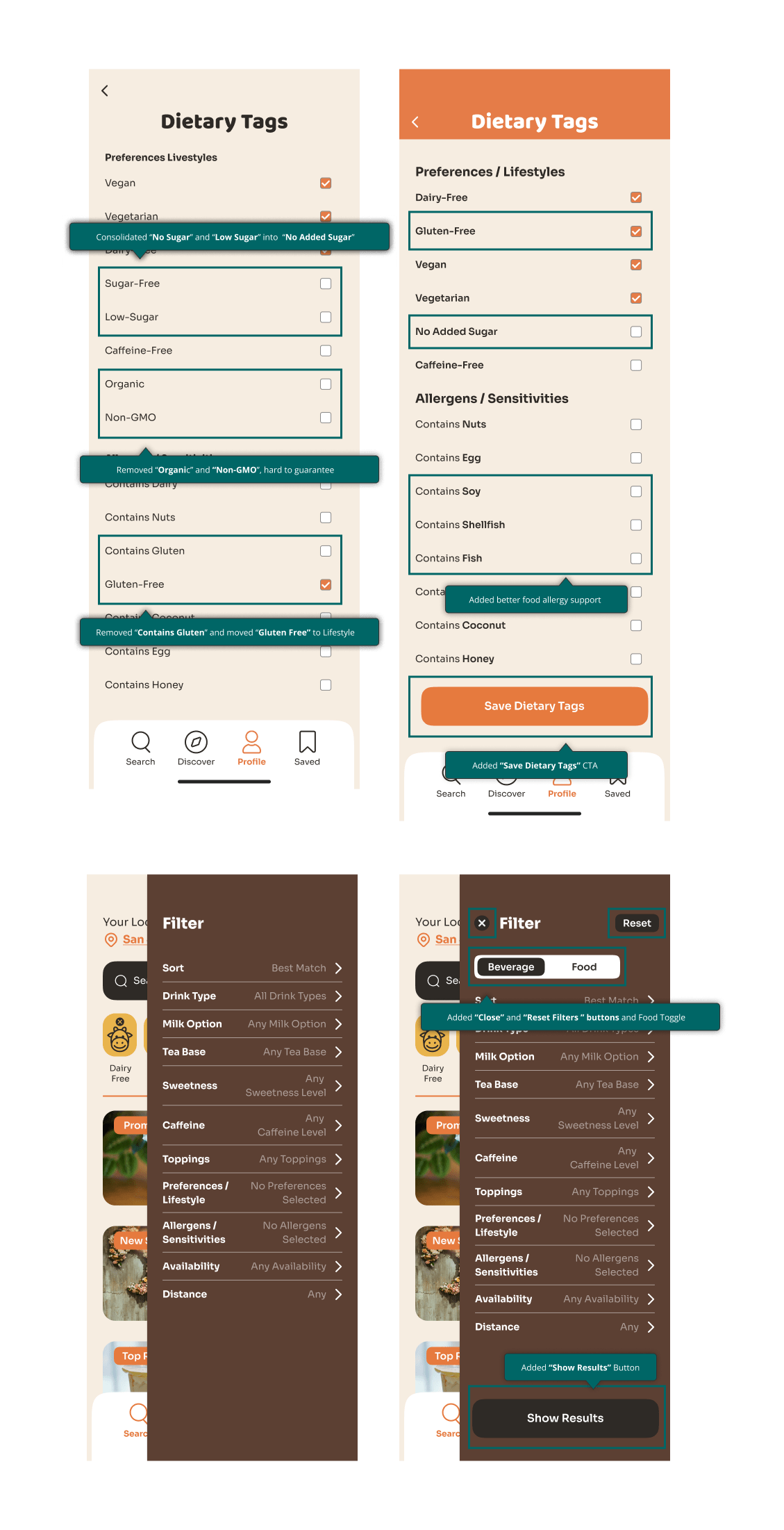 → Design impact: Users with dietary restrictions struggled to quickly identify safe drink options, often relying on guesswork, calling shops, or searching through reviews—adding unnecessary friction and anxiety to a simple decision.