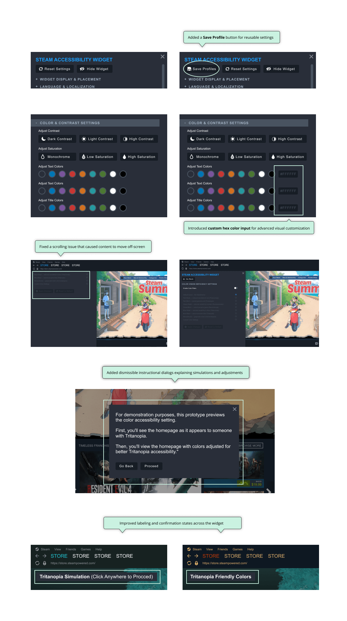 → Design impact: Led to a centralized Accessibility Widget accessible from the Steam homepage